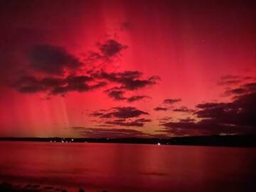 выглядит так, словно дождь был снят через красный светофильтр - не, северные грандиознее - словно по небу гигантское полотно разноцветное растянули и встряхнули его, а оно по ветру неторопливо так стелется - разок попробовал заснять - глянул на экранчике фуджика, удалил и больше не пробовал, чтобы прицел не сбить - это всё равно, что айсберг в ванне зафотать