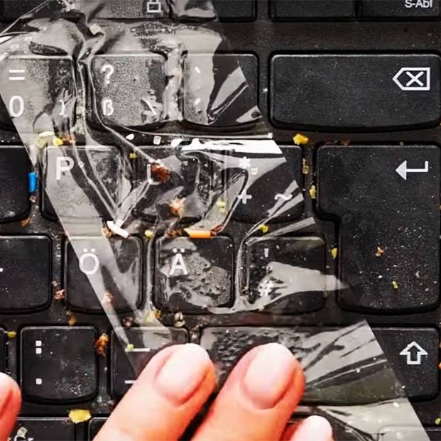 1. Липкая чистка Скотчем можно очистить от мелкого мусора самые разные поверхности – например, клавиатуру от пыли, одежду от шерсти (наподобие липкого ролика), грязь из швов и подобных труднодоступных мест, мелкораздробленное стекло и даже ртуть от разбитого градусника можно собрать.