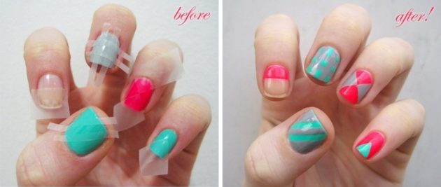 2. Художественная роспись Из скотча можно соорудить разнообразные трафаретные конструкции для раскраски чего угодно – от стен до ногтей. А можно и сам скотч использовать для создания узоров и даже полноценных картин.